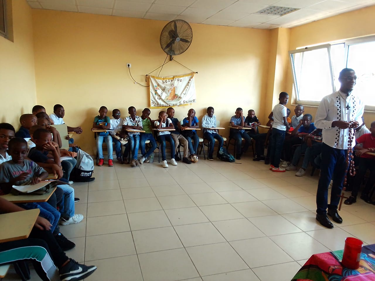 Na senda do TRIÉNIO da CRIANÇA, os ‘COROINHAS’ de São Paulo, tiveram hoje um momento de reflexão e oração onde aprofundaram mais sobre a ORIGEM e a REZA do TERÇO, para assim viverem com maior devoção o mês de Maio. Pois a fé transmitida e adquirida desde a infância, tende a ser mais eficaz até a vida adulta. O tema foi orientado pelo clérigo Da Luísa e contou com a participação massiva e activa das crianças, que, no ritmo das animações, aprenderam brincando.